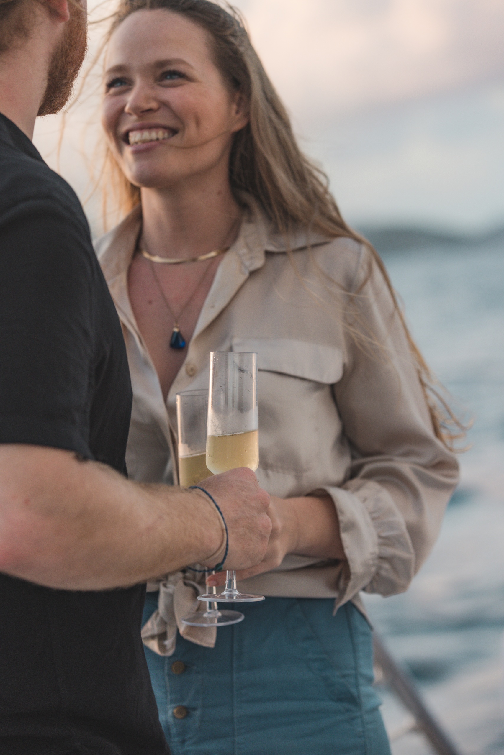 Champagne sunset service with premium bubbly throughout the sail