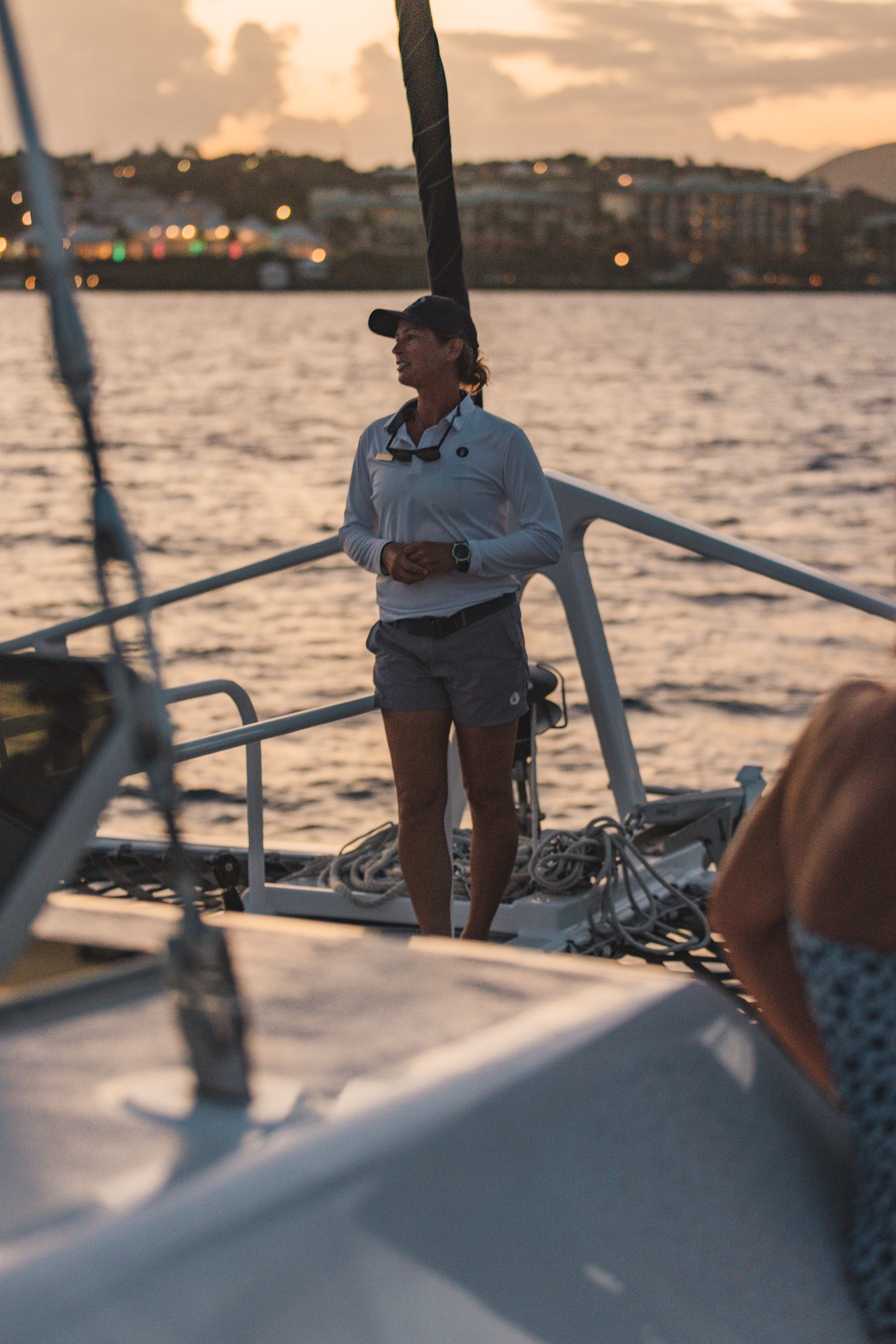 - As we set sail, our crew raises the sails just as golden hour begins over the USVI horizon.